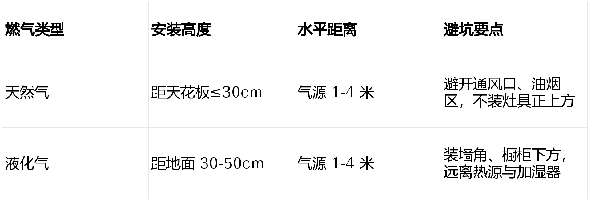 液化气(丙烷 / 丁烷,重于空气):选丙烷专用型,避免通用型误报漏报。