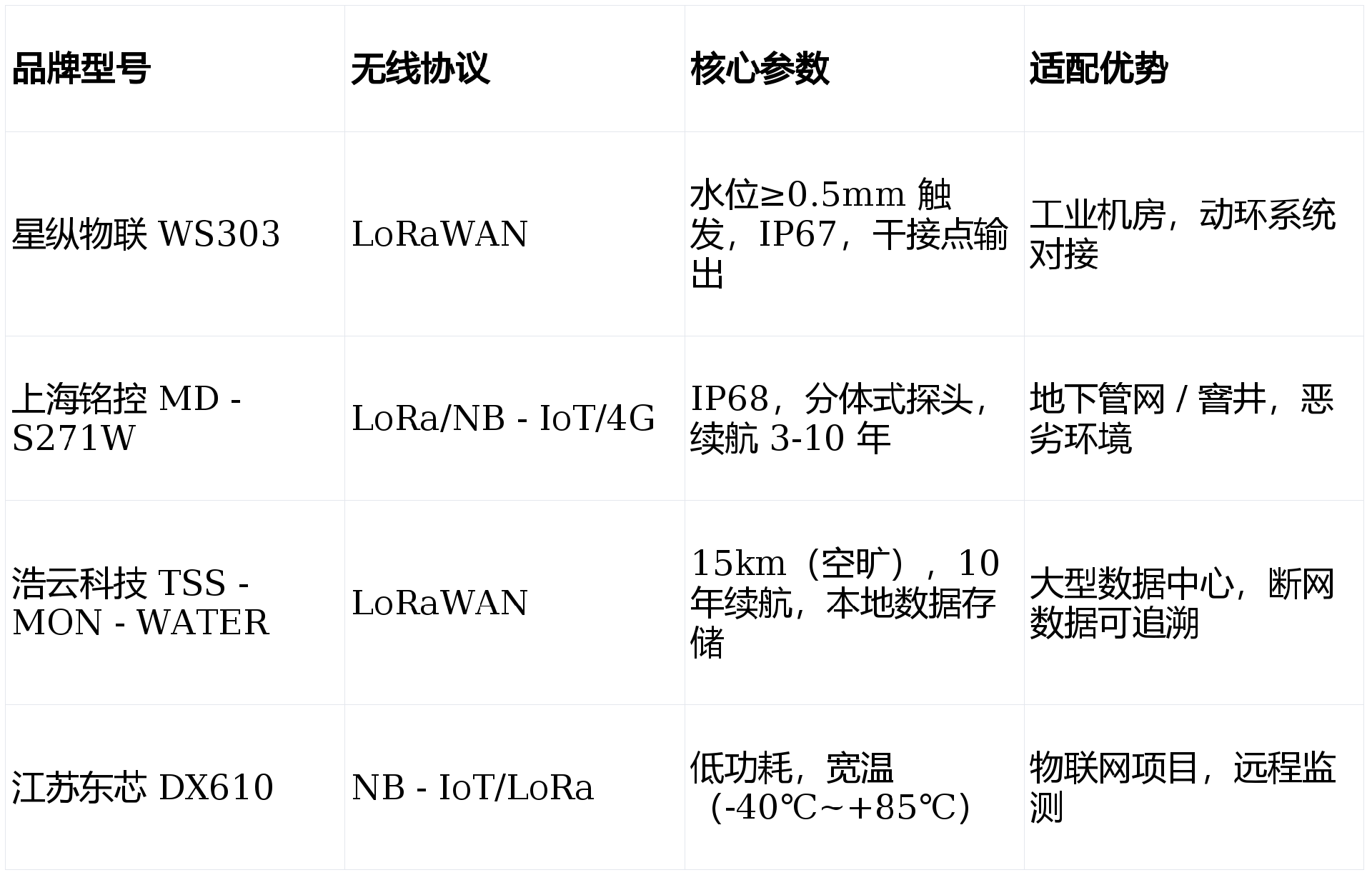 工业机房:星纵物联 WS303(LoRa + 干接点,适配动环)。