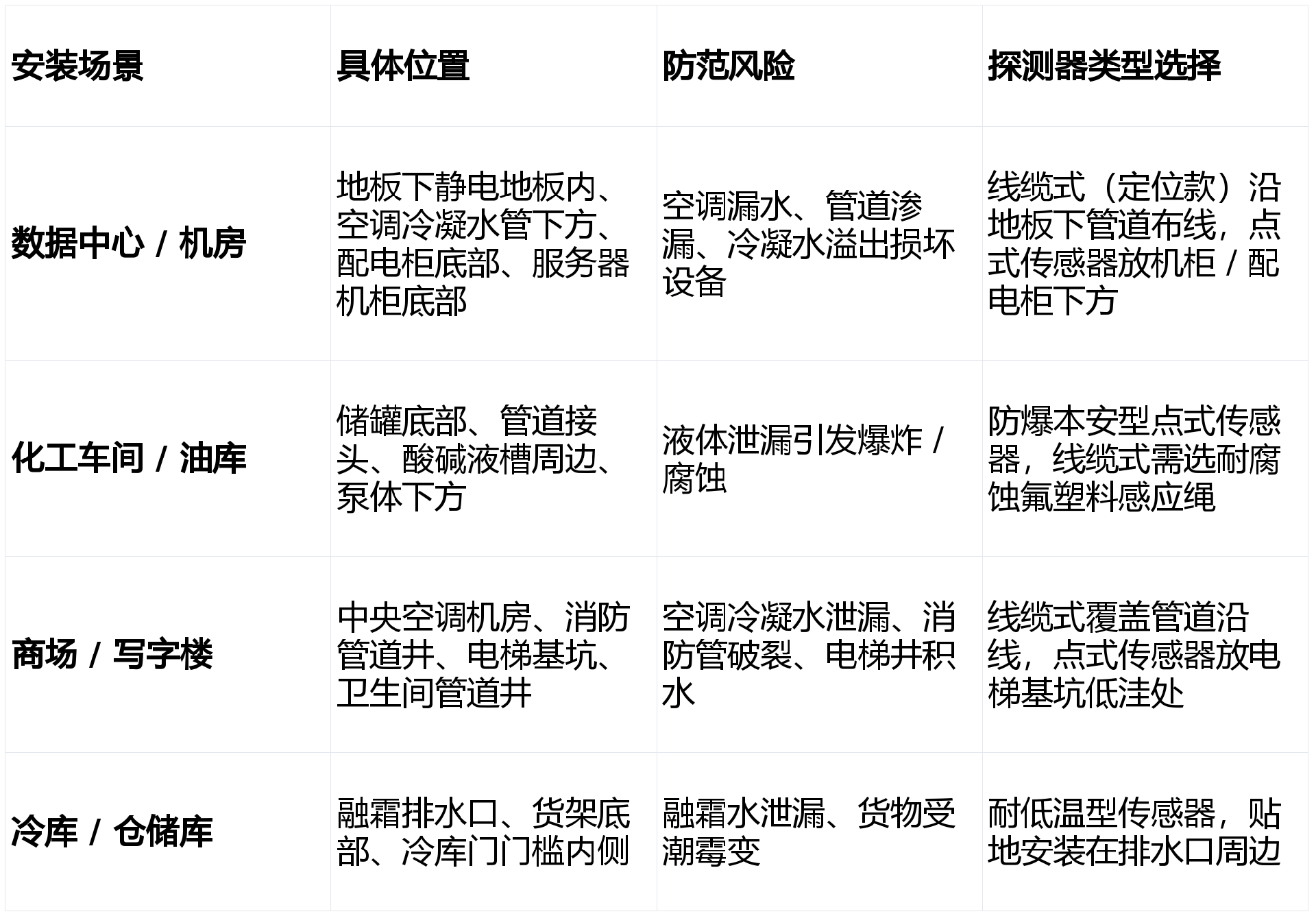 二、 工业 / 机房 / 商业场景:围绕 “设备 + 管道 + 低洼区” 布局