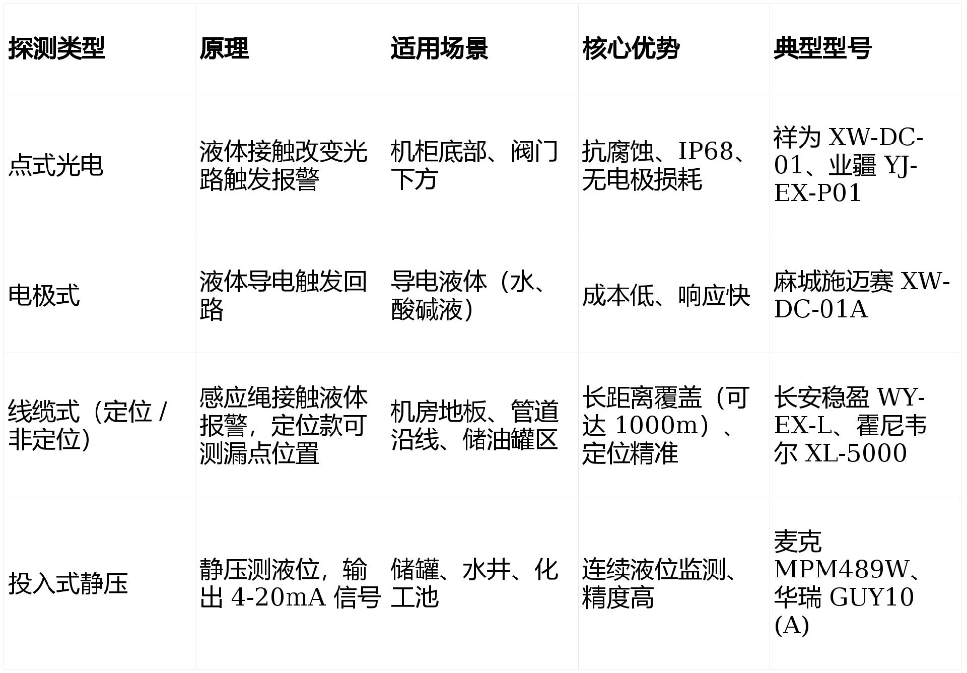 选探测方式:小范围点位选光电 / 电极;长距离 / 定位选线缆式;连续液位监测选投入式静压。